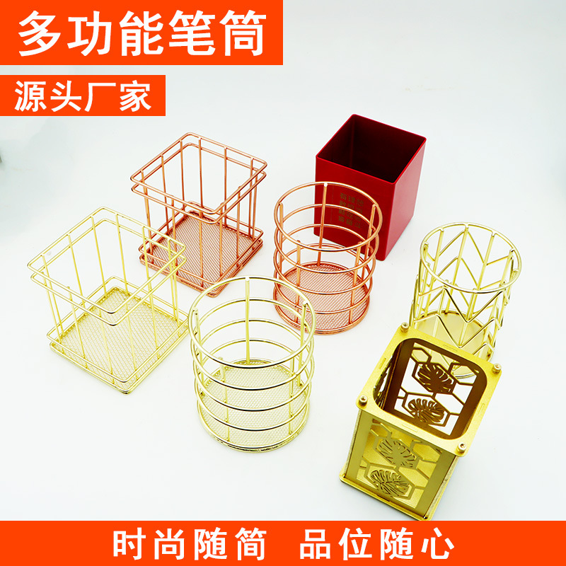 創意事務鉄芸筆筒シンプル北欧風透かし彫り金属筆筒学生デスクトップ収納筒diy筆筒
