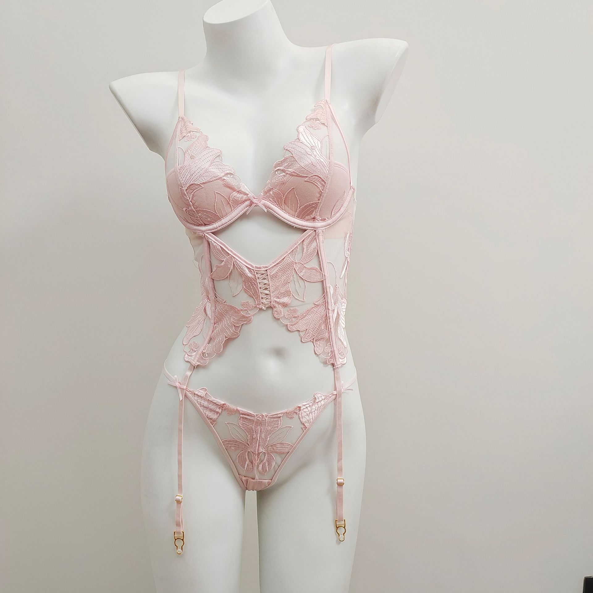 超薄透明ブラジャーセットセクシー誘惑刺繍網糸通気性女性下着小さなストラップ女性夏
