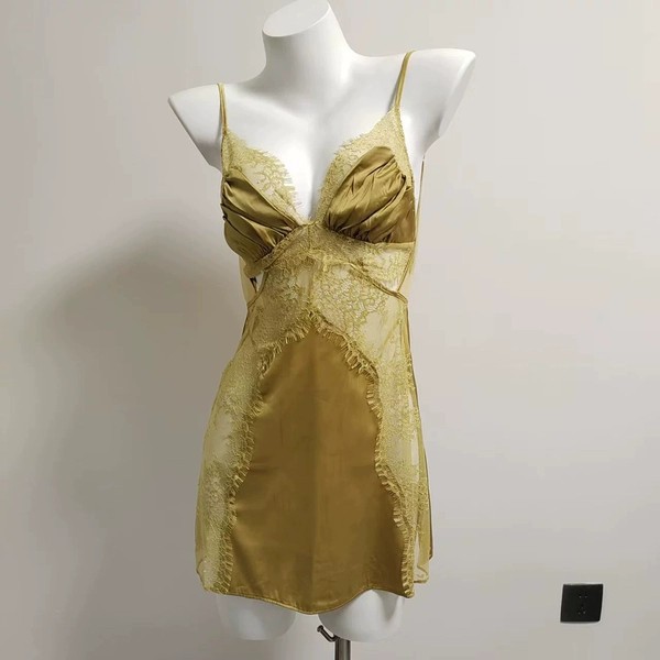 2025 新しいセクシーなパジャマ女性の夏の小さな胸レースメッシュ中空誘惑アイスシルクサスペンダーナイトガウン