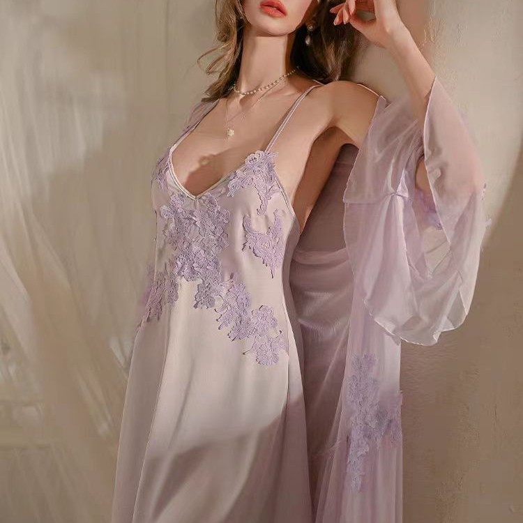セクシーなストラップのパジャマの女性2024年の新型の美背の薄いタイプの通気性の氷の糸の高級感のレースのスカートの家の服