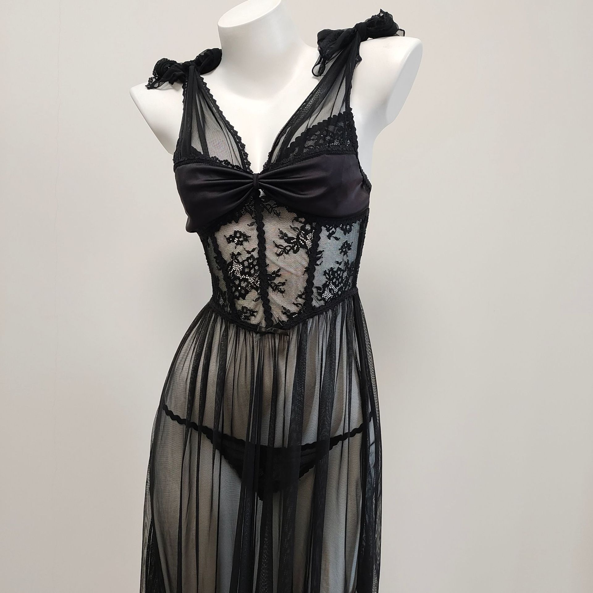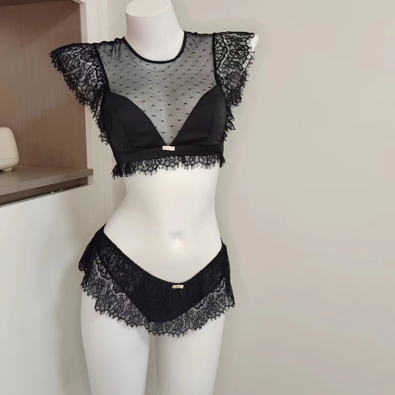 2025新型の前でフォークを開けてレースのセクシーなパジャマを誘惑します。
