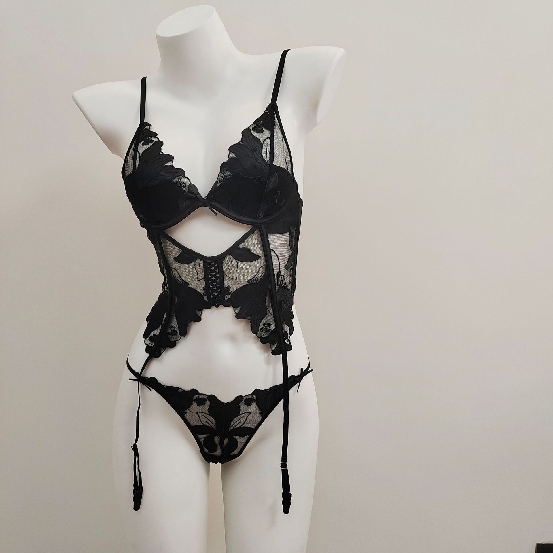 フランスの胸パッド付き魚骨ブラジャーセクシーなネットパジャマ