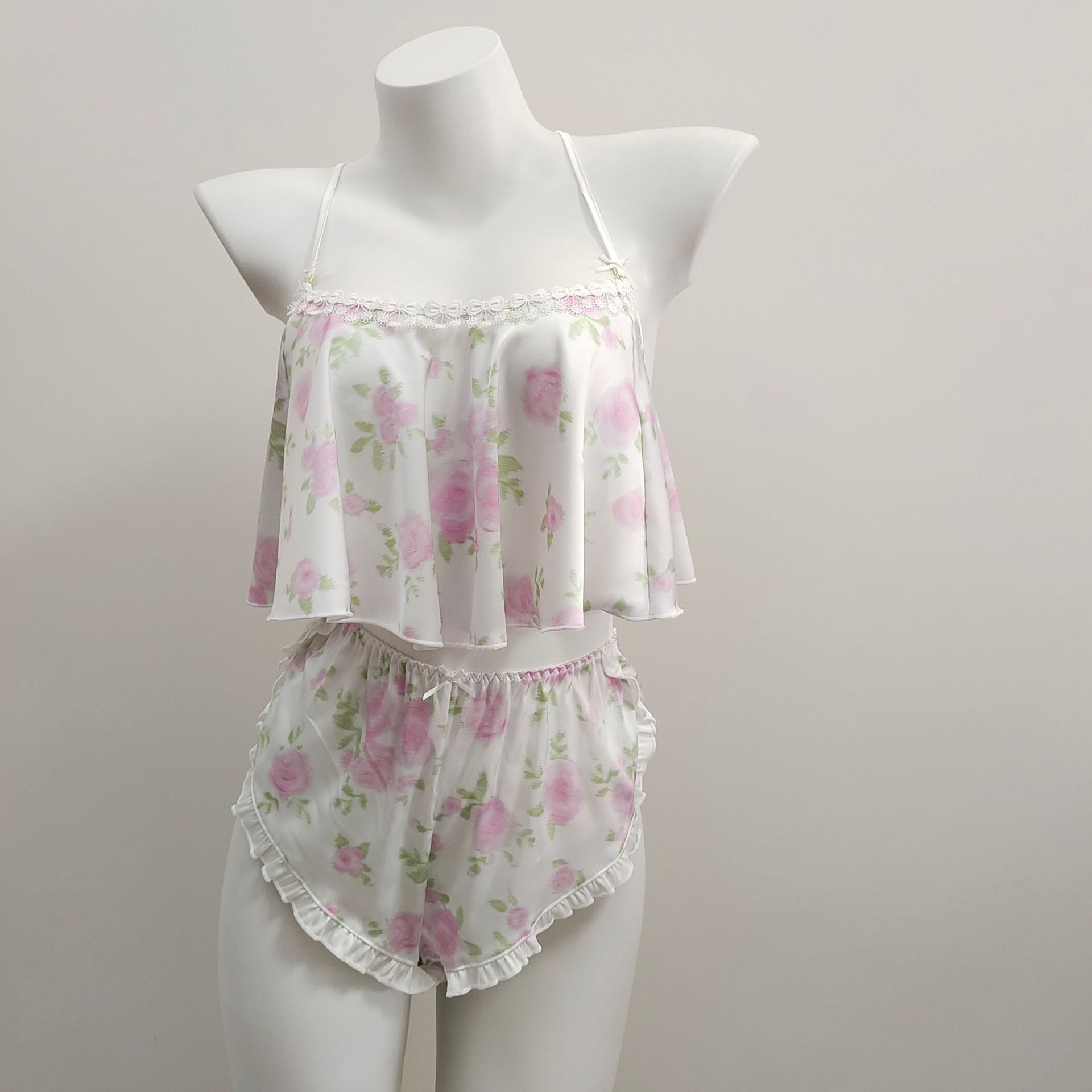 女性2024新型セクシーなネットパジャマ夏の純欲風小胸蕾リボン胸パッドのストラップ