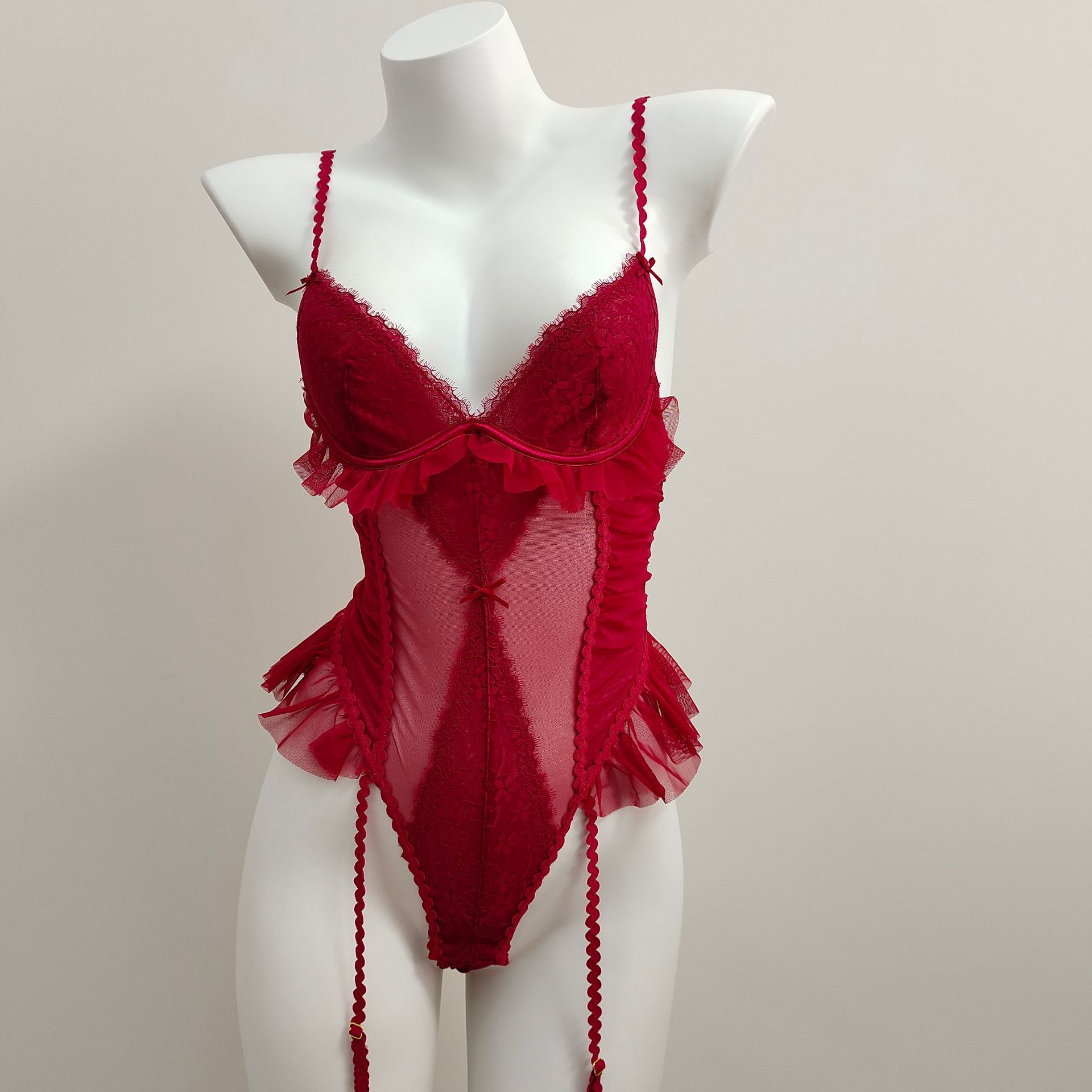 セクシーなパジャマ女性のための夏 2025 新しい薄い赤いレースの腹巻ハイエンドサスペンダージャンプスーツホームウェア