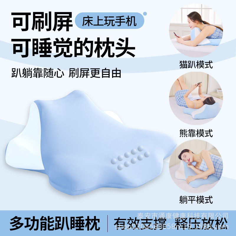 低反発素材のベッド用枕、多機能なうつ伏せ枕、うつ伏せで寝たり、スマホや本を読んだりするのに最適
