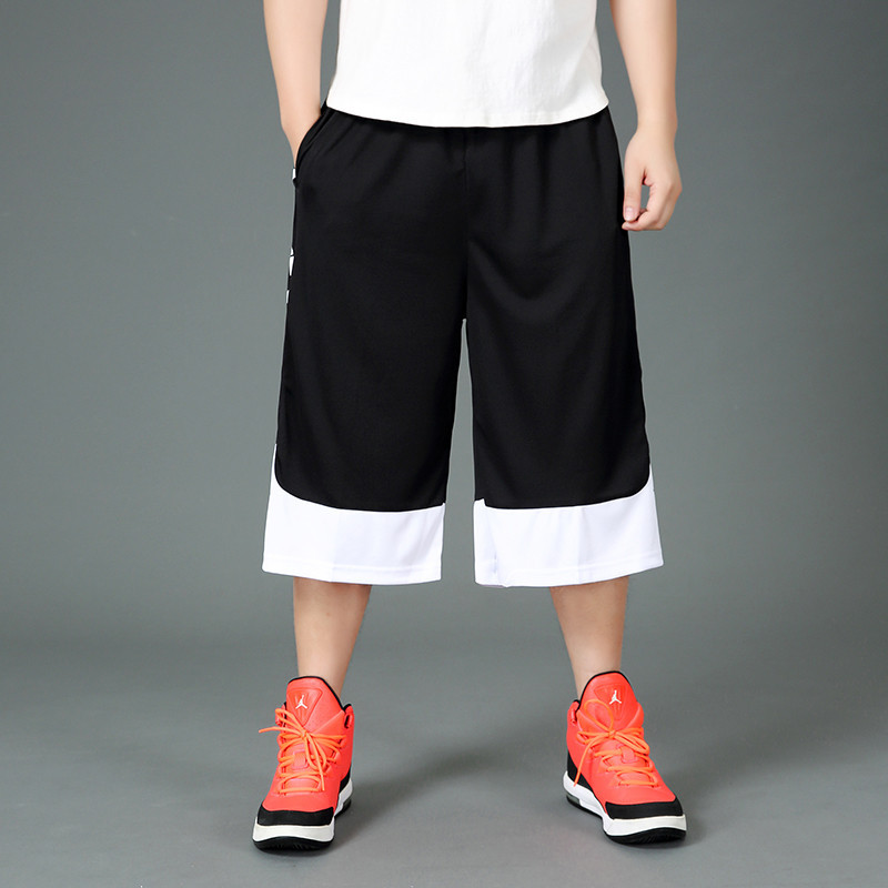 夏の薄いビーチパンツの太った半ズボンのヒップホップスポーツの中でズボンの弾力性の大きいサイズの膝のバスケットボールのズボンの男性の7分のズボン