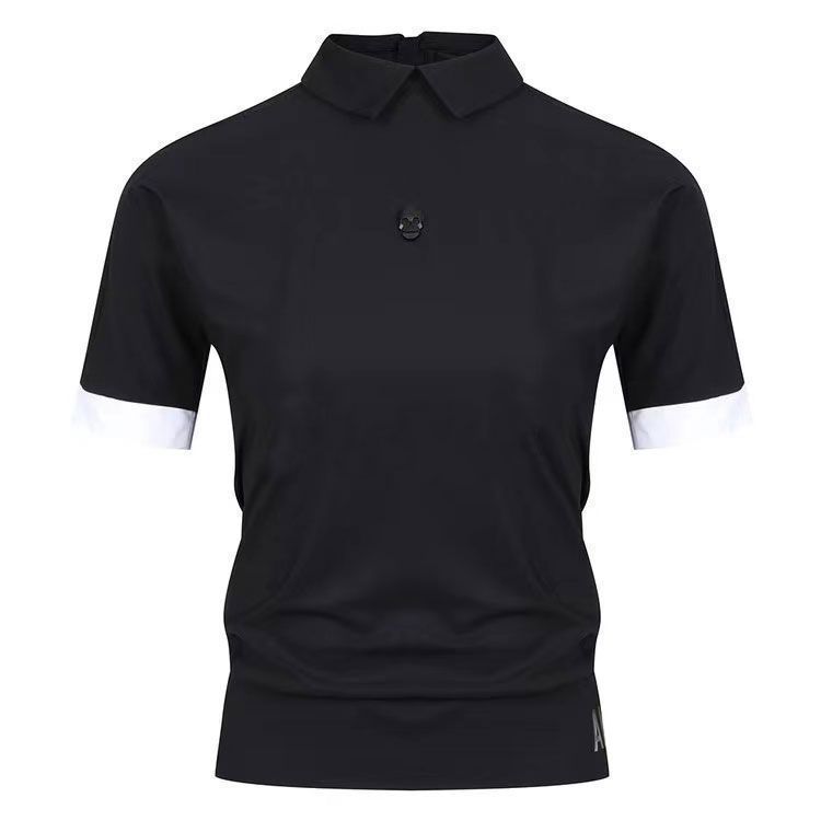 韓国 2024 ゴルフレディース半袖夏新作速乾ファッションラペルトップスリムフィット