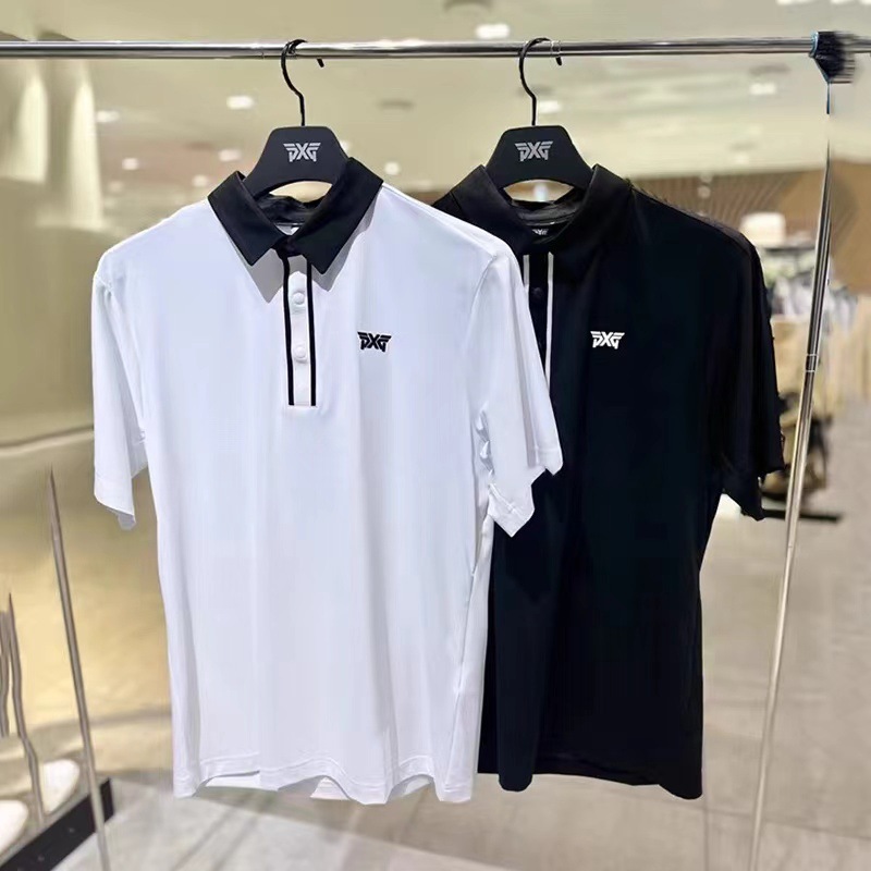 24 夏メンズゴルフスーツゴルフラペルハーフボタン速乾通気性半袖 Tシャツ無地ショートパンツ
