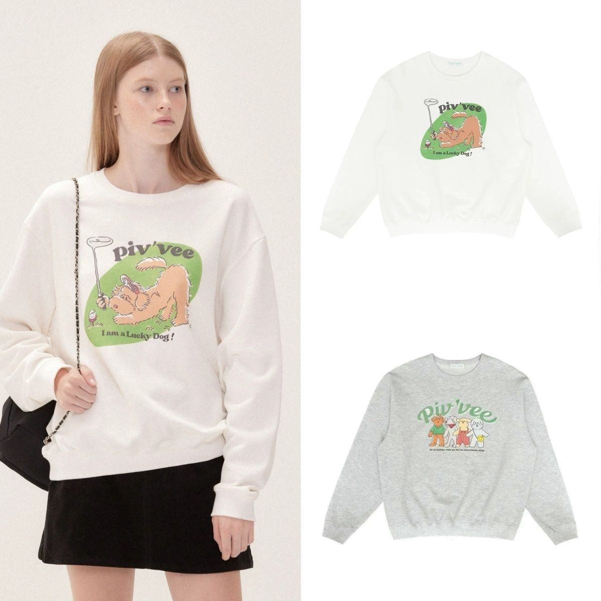 韓国購入ピブゴルフウェア24年女性秋レタードパピオ多用途ラウンドネック長袖スウェットシャツ