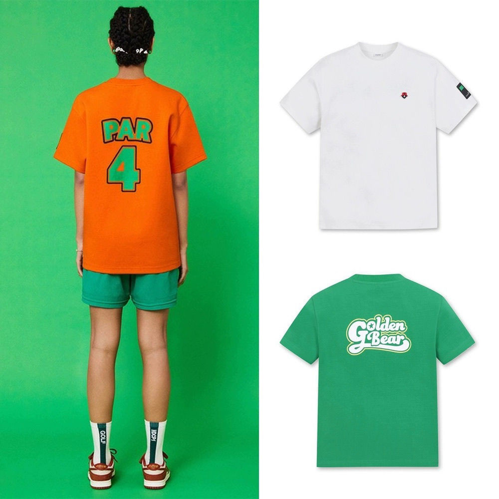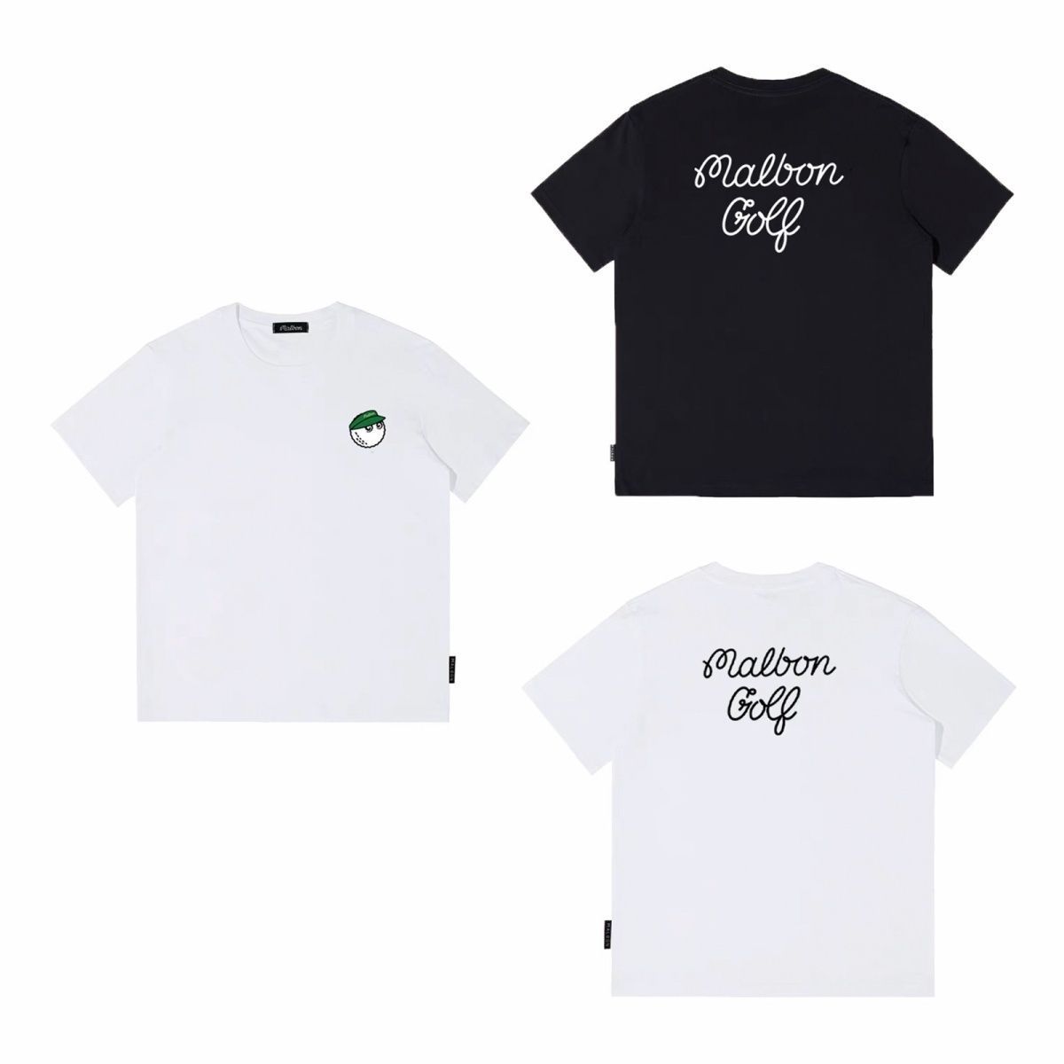 韓国 MALBON 半袖 ゴルフ ラウンドネック プリント Tシャツ トップス ユニセックス ホワイト ブラック ブルー グリーン