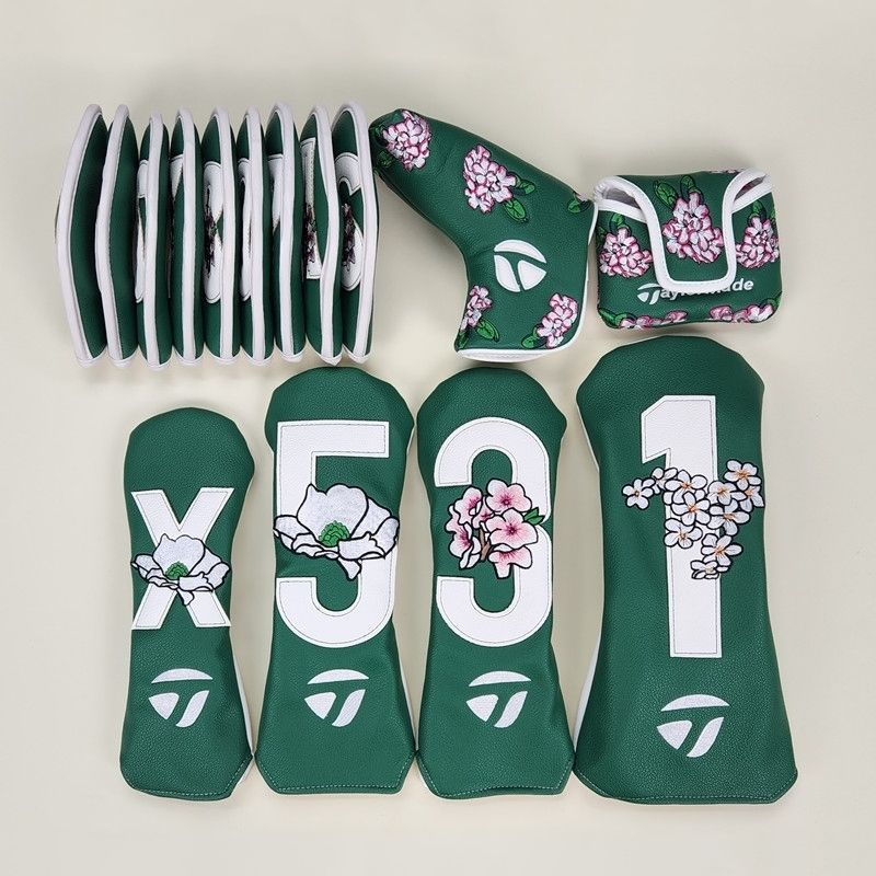 TLM マスターズ限定版ゴルフクラブカバー、クラブヘッドカバー、パター、アイアン、ウッドクラブカバー、ボールヘッド保護キャップカバー