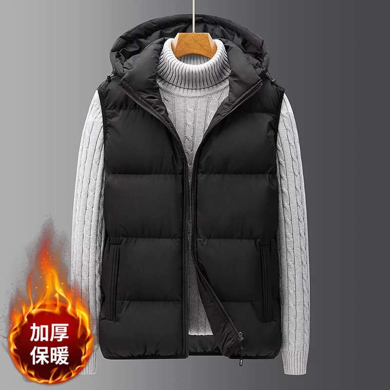 国境を越えた男性秋冬の保温ベスト馬甲男連帽ゆるい純色公版カン肩コート綿馬甲