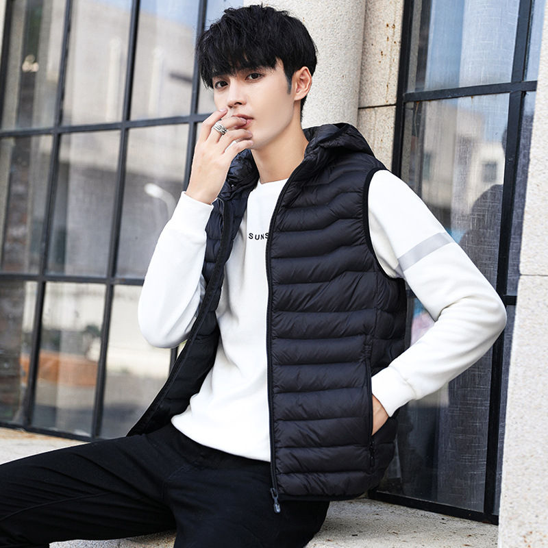 跨境轻薄男士棉马甲秋冬新款连帽保暖背心坎肩纯色马夹休闲外套