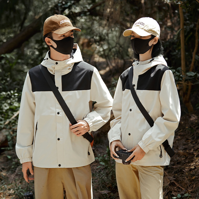 新型春秋ジャケット防水防風突撃服公版共同購入カップルモデルフード付きアウトドア登山機能コート