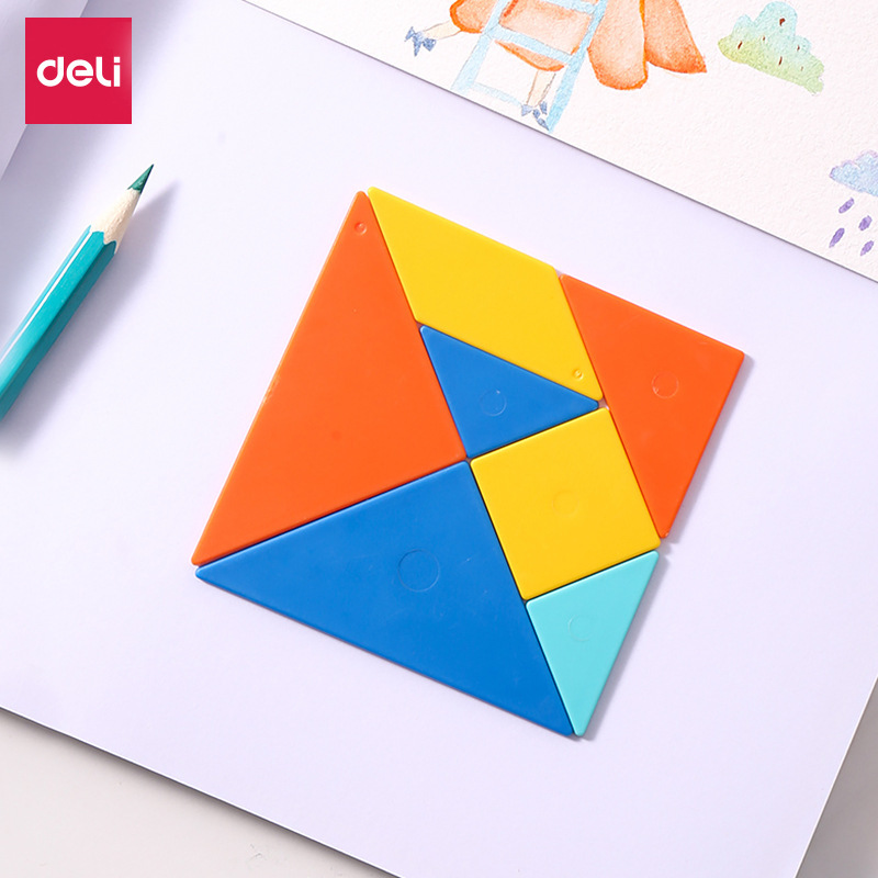デリ 74505/74506 タングラム箱入り学生子供の知的パズルおもちゃ教材幾何学的形状