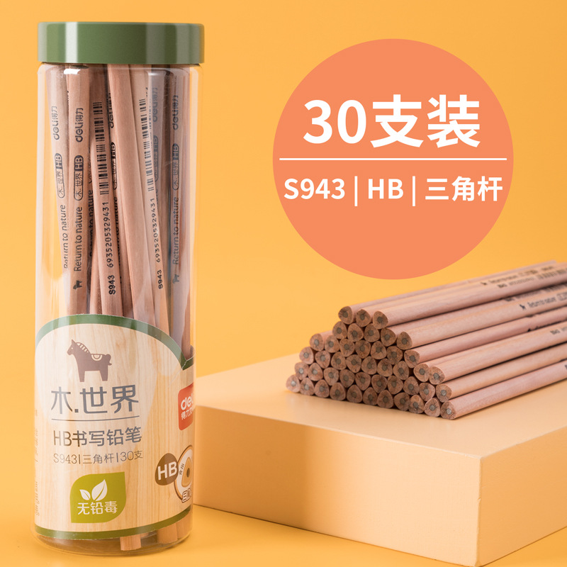 デリ S943 木製鉛筆 30本入り HB 三角棒 バニラ材 書き込み 学生筆記用鉛筆