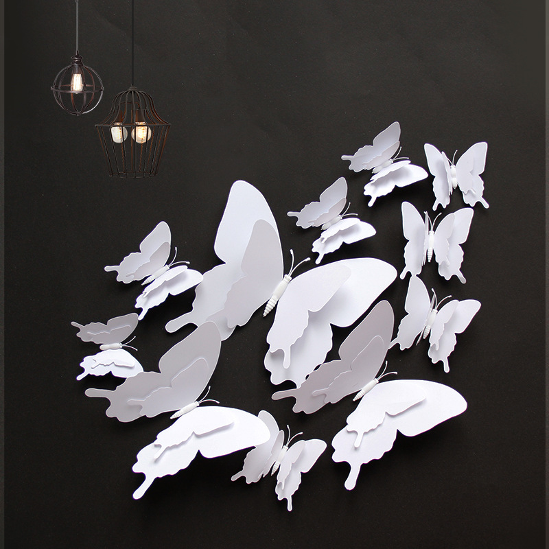 白蝶二重12匹3d立体蝶壁貼りパーティー結婚式配置家庭装飾シミュレーション蝶装飾