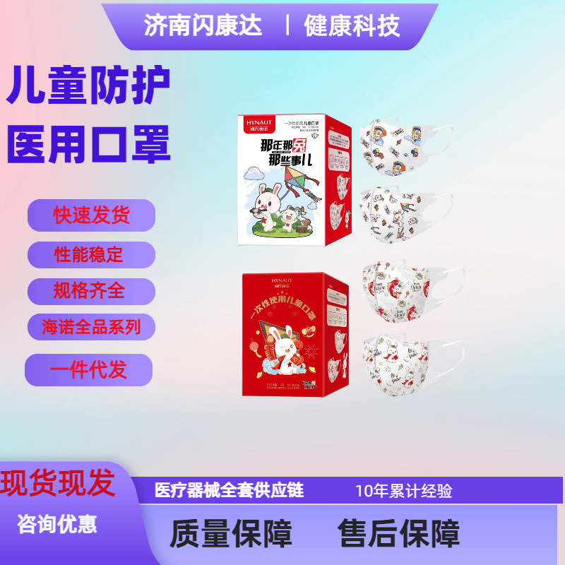 海氏海諾3d立体マスクの使い捨て子供マスクの年のウサギのマスクの通気性は独立して高い顔の値を詰めます。