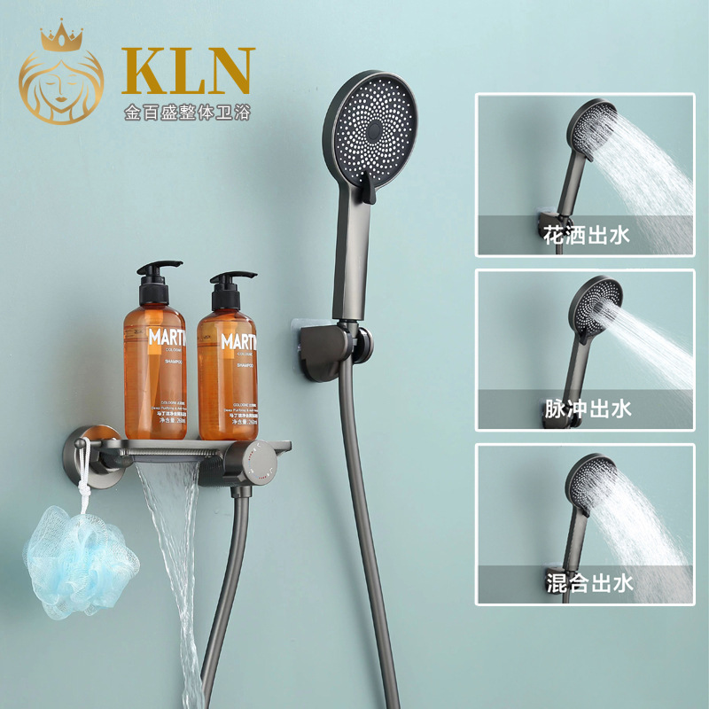 ガングレー簡易シャワーシャワーセットフック付き銅本体プレート入浴セット金百盛風呂008
