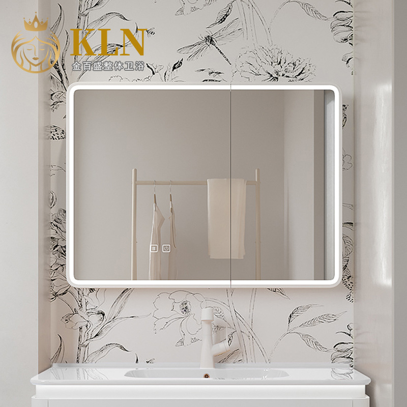 クリーム風実木浴室キャビネットセットティッシュ穴美化粧知能除霧鏡キャビネット金百盛風呂823