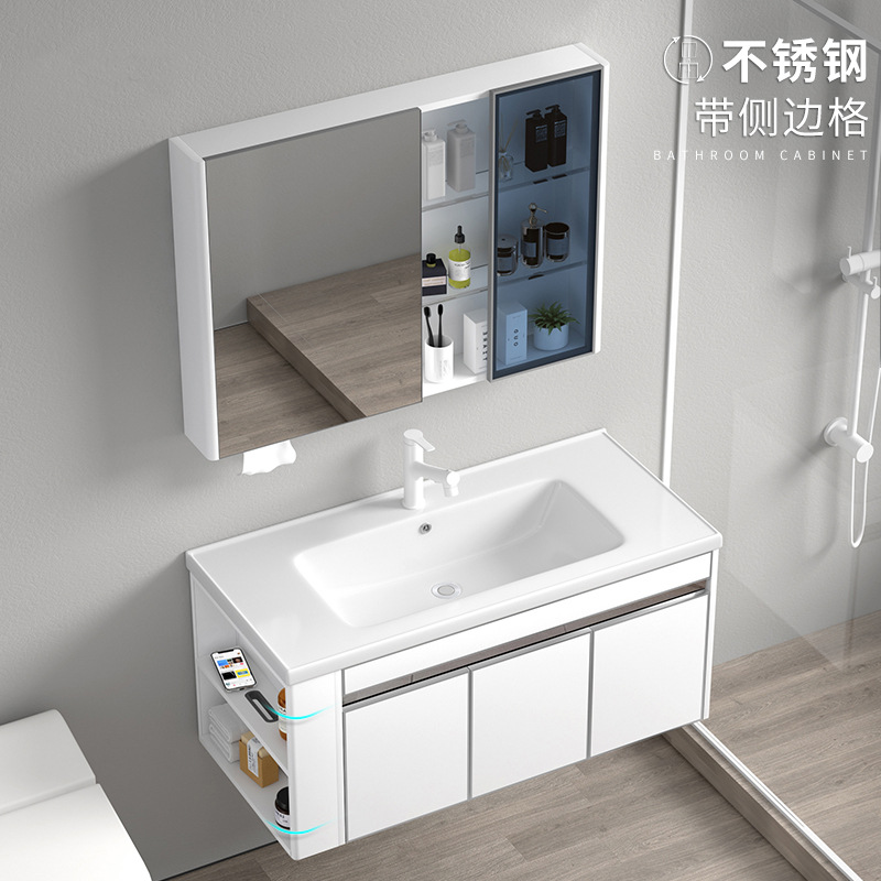 シンプルなハイライト白色304ハニカムアルミステンレス側サイド棚洗面器洗面器浴室キャビネットセット