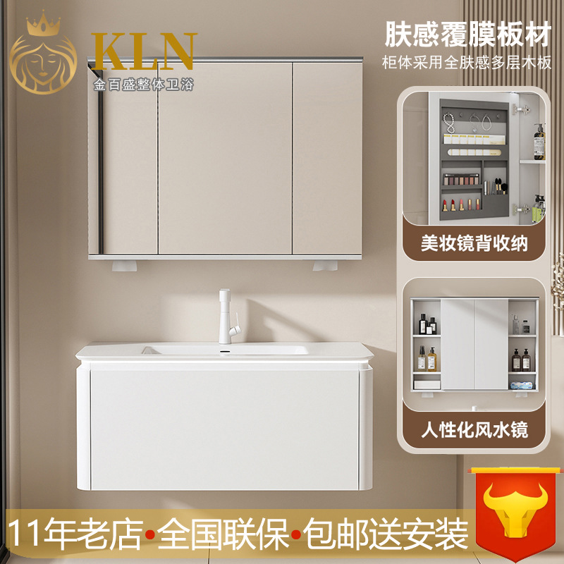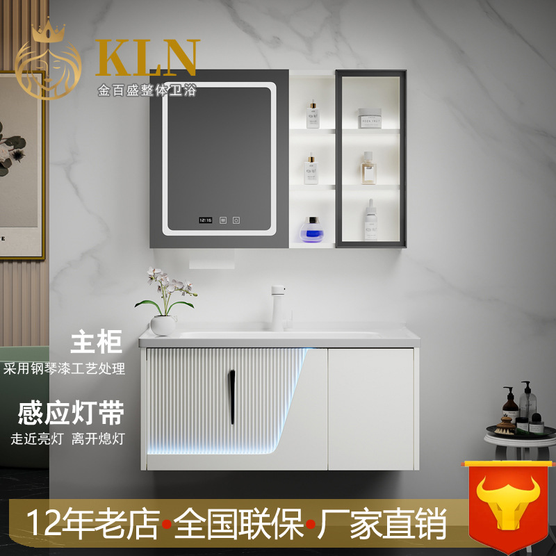 実木浴室キャビネットセット塗装誘導灯グリルメインキャビネット知能鏡キャビネット洗面台金百盛衛浴2069