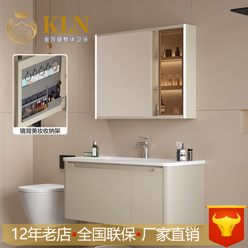 実木浴室キャビネットセット塗装ドアボード化粧棚付き誘導鏡キャビネット洗面台金百盛風呂8033