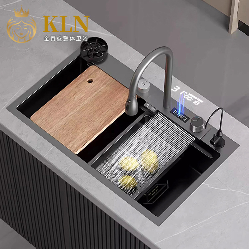 4.0デジタルガン灰黒飛雨ナノコーティングキッチン水槽304ステンレス洗面槽大単槽QH05