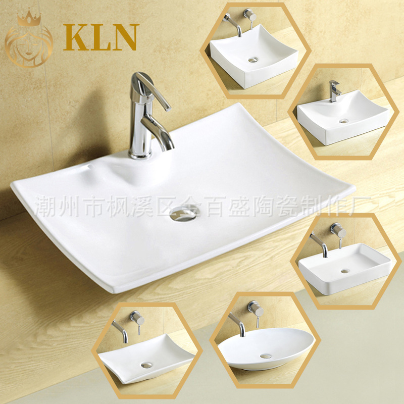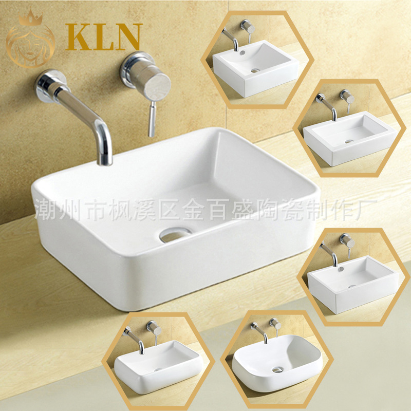 陶磁芸術盆長方形蛇口なし穴石上洗面器手洗い洗面器金百盛風呂8025