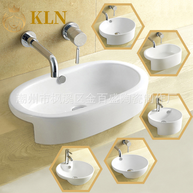 半埋め込み式円形陶磁器芸術盆半掛石上台盆洗面手洗い金百盛風呂8030
