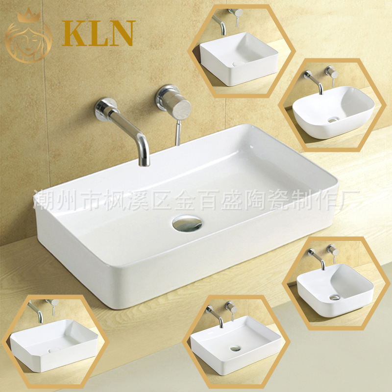 薄い辺の陶磁器の芸術のたらいの四角形は蛇口の穴の台の上でたらいが洗面器の金百盛の浴室の8438を洗います