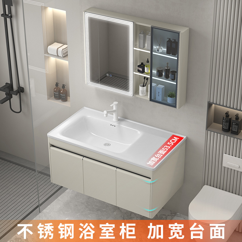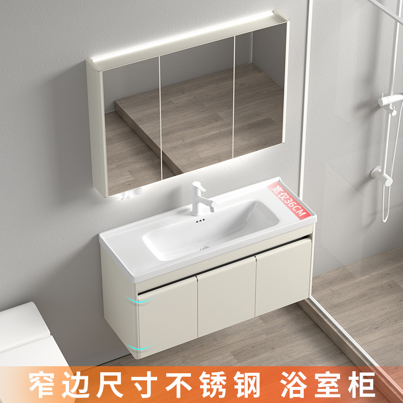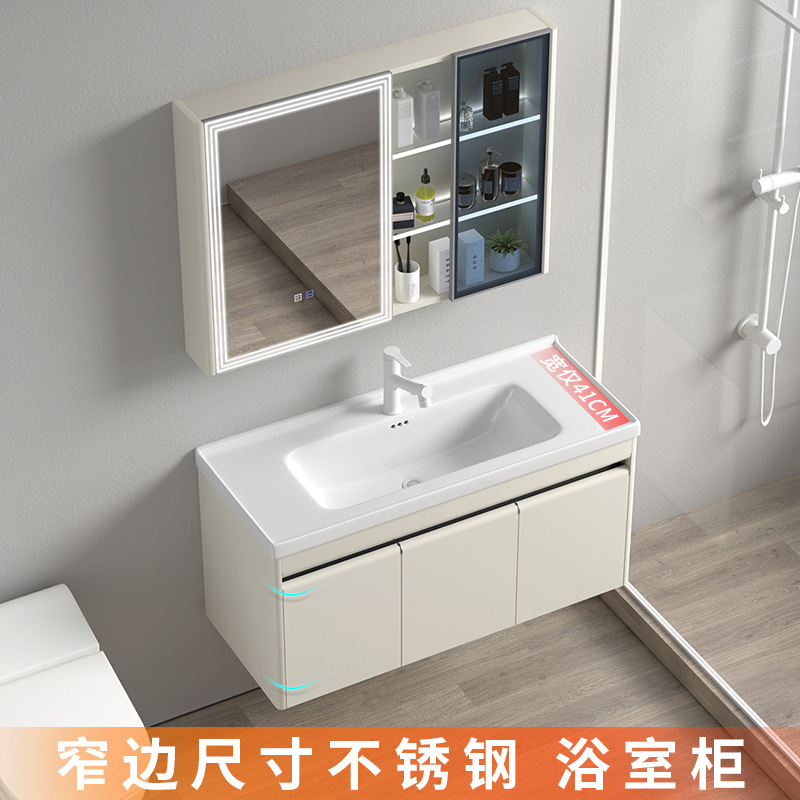 42幅浴室キャビネット一体式陶磁器盆シームレス盆トイレ小戸型ステンレス浴室キャビネットセット