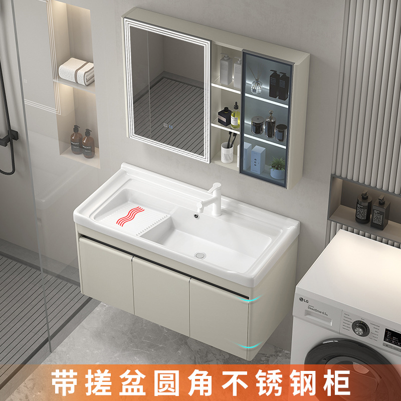 ミルク白色ステンレスセルラートイレ洗面器セラミック一体洗面器浴室キャビネット