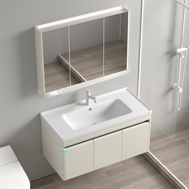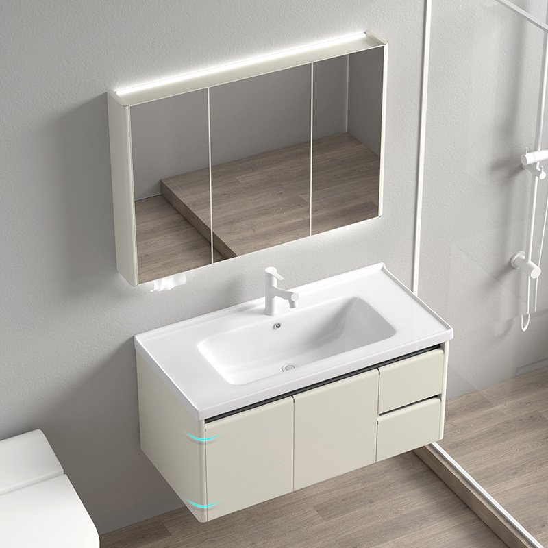 クリーム風ステンレスのハニカムボードと洗面台の洗濯器とセラミック一体の洗面器の浴室キャビネットの組み合わせ