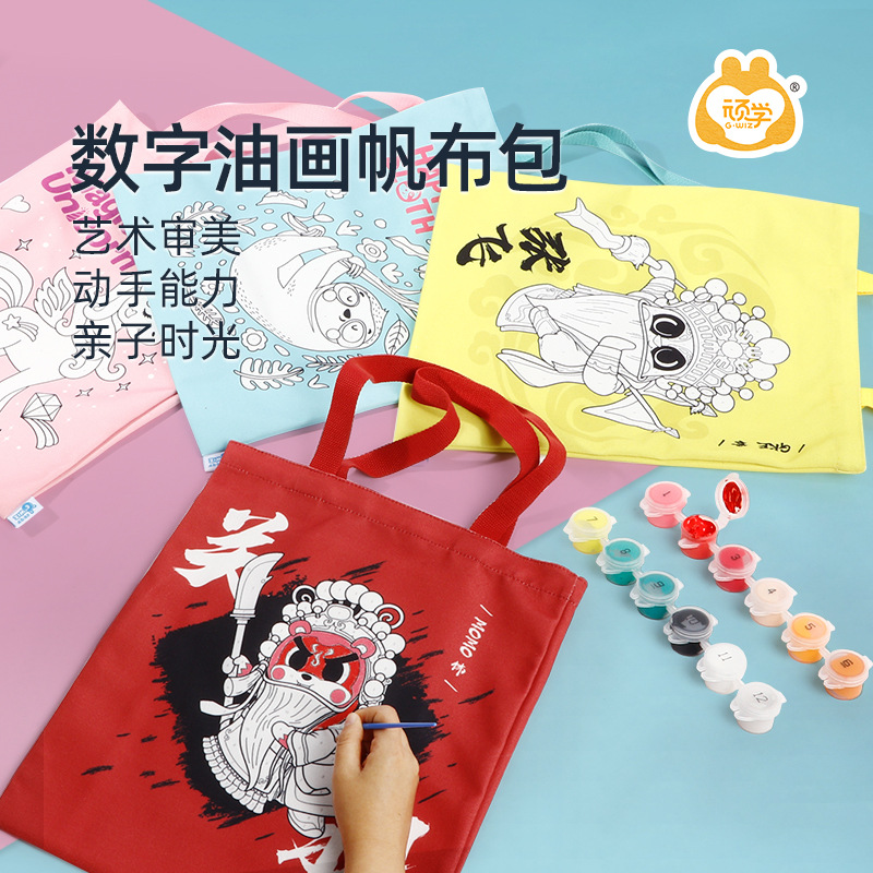Gwiz子供キャンバスバッグ手作りdiy落書き油絵キャンバスバッグ幼稚園絵画手提げ袋