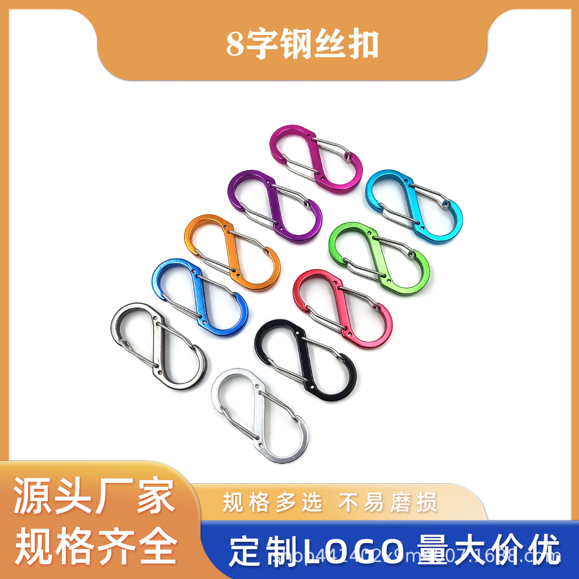 工場直送 アウトドア スチールワイヤー 8字バックル No.5 S字カラビナ ダブルヘッド アルミ合金カラビナ 全色在庫あり