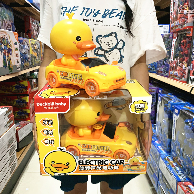 益智鴨口獣宝宝回転音光電気自動車万向行黄鴨音光小自動車児童玩具車