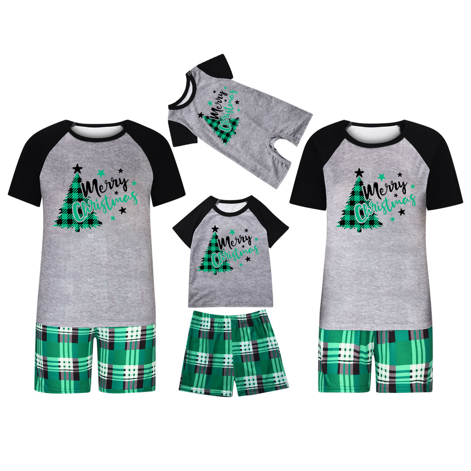 国境を越えた欧米の半袖の大きいサイズの部屋服の親子のスーツの格子縞の半袖のクリスマスの服の居住服のカジュアルなスーツの卸売り