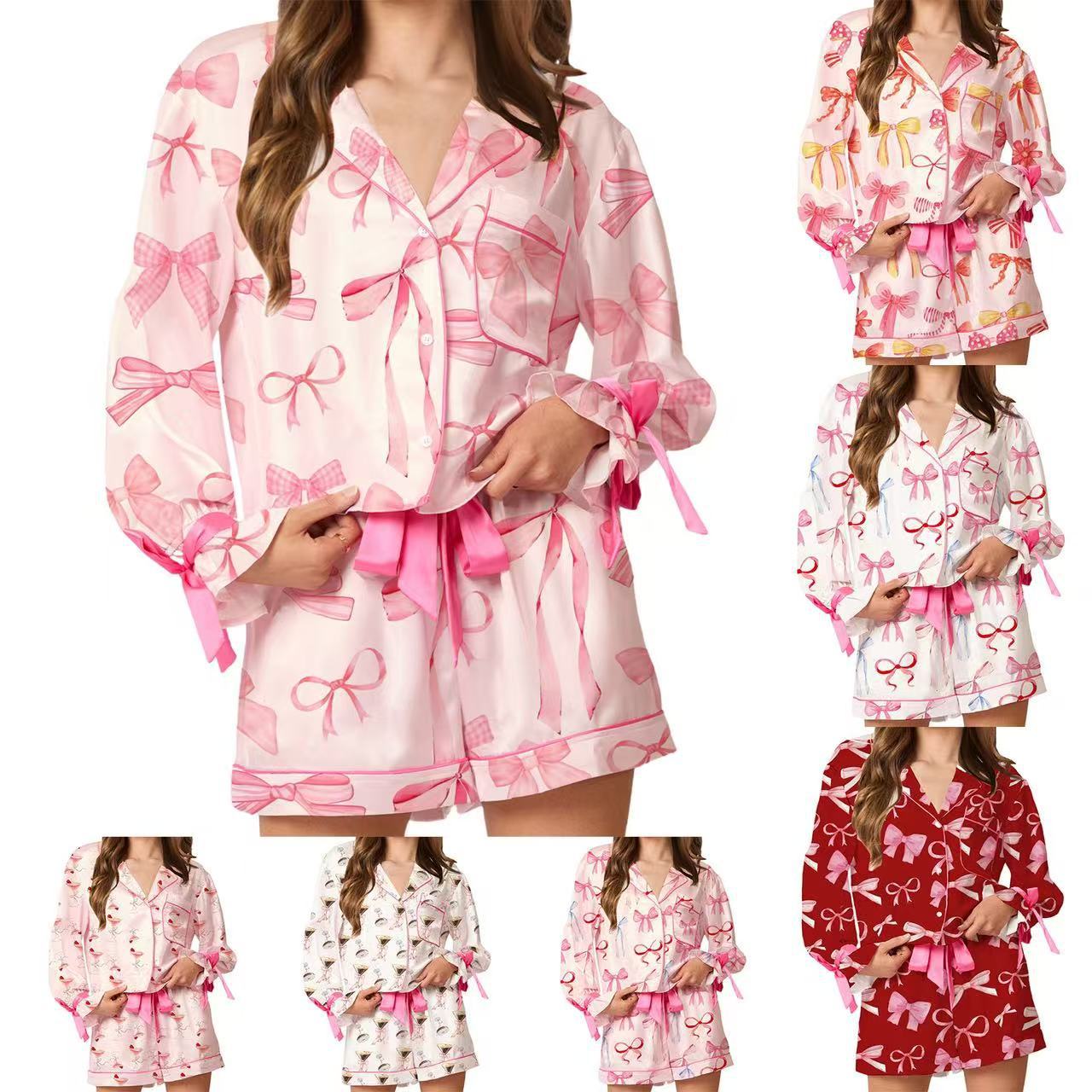 国境を越えた対外貿易アマゾンパジャマ春夏新半袖セット欧米風カジュアルプリントカーディガン女性の家庭