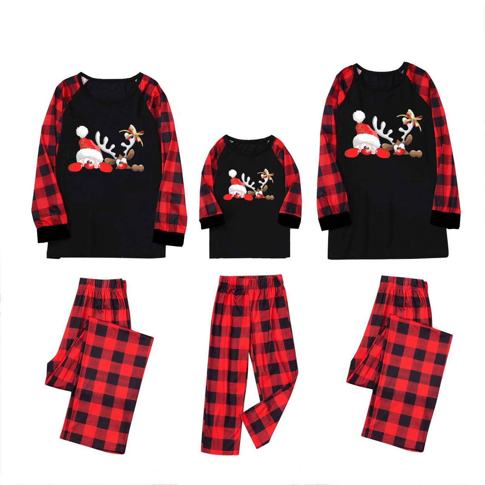 2021新作クリスマス親子ルームウェアセット鹿の角のアルファベットの格子模様の家庭服セットクリスマスパジャマ