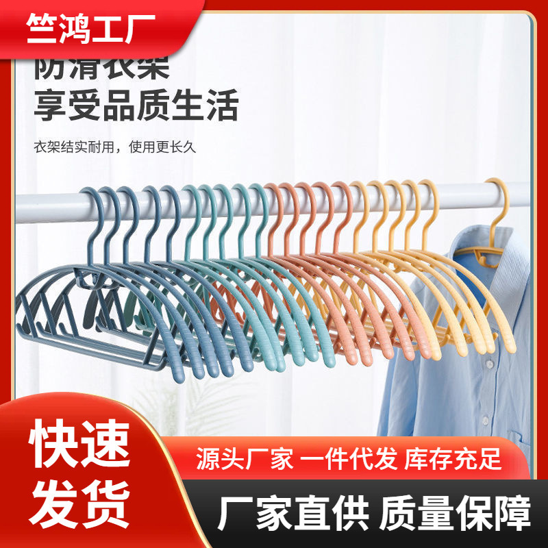 1688無傷の広い肩のハンガーの家庭用の滑り止めの服のハンガーの成人の太くて太いプラスチックのズボンのハンガーの寮の学生の服の支え