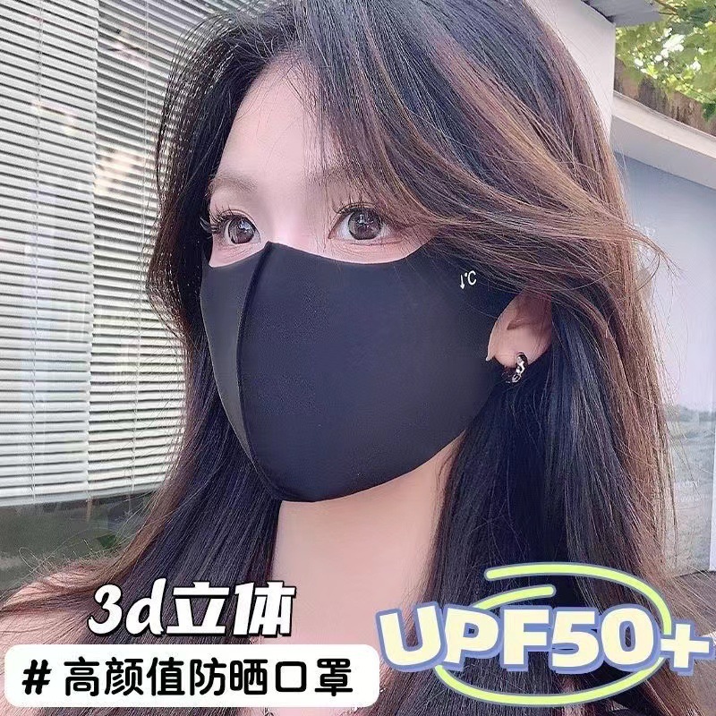 夏用アイスシルクマスク、通気性と洗えるヒアルロン酸日焼け止めマスク、目の保護、UV保護、高見えと痩身