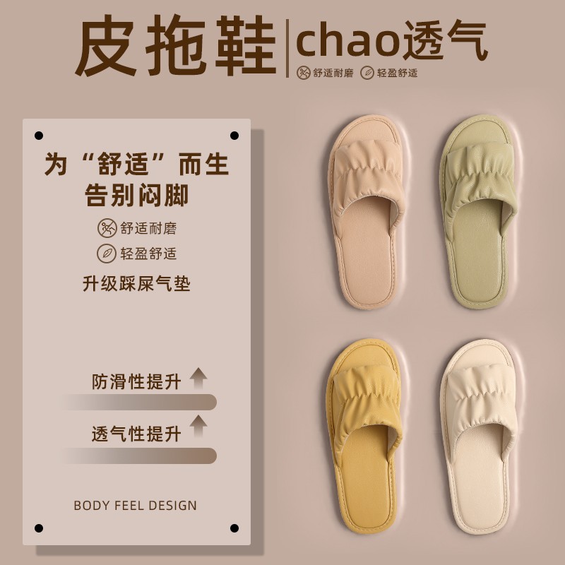 スリッパ女性用美容院専用高級感2025新型室内家庭滑り止め防臭高級皮スリッパ女性