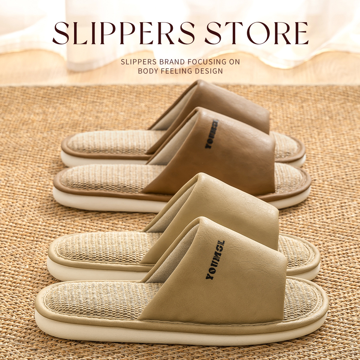 亜麻スリッパ男性室内家庭春秋静音吸汗通気滑り止め床綿麻皮スリッパ女性四季
