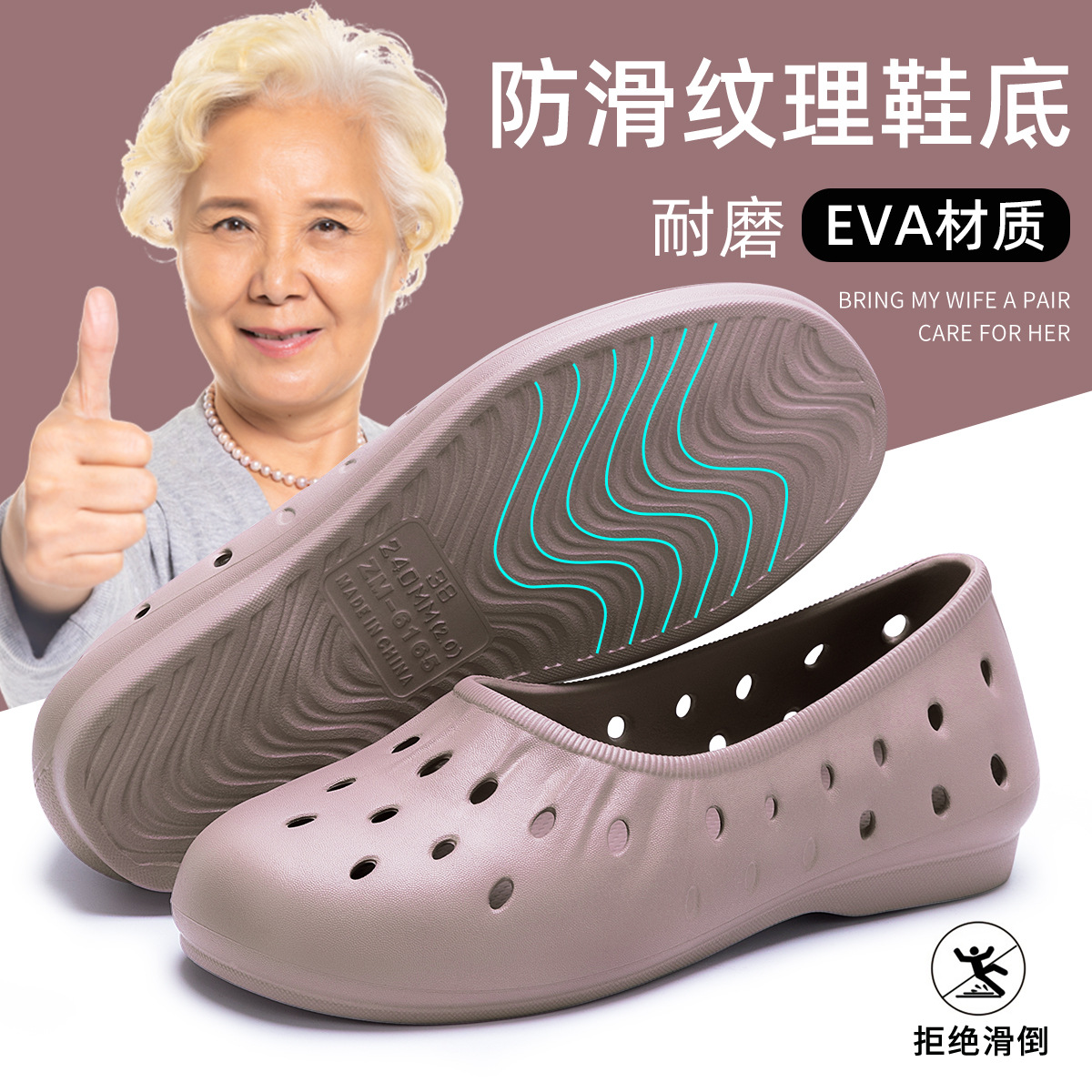 高齢者の滑り止めスリッパ女性は夏に2025の新型の柔らかい底の平底の転倒防止の包頭のお母さんのサンダルの女性のタイプを着ます。