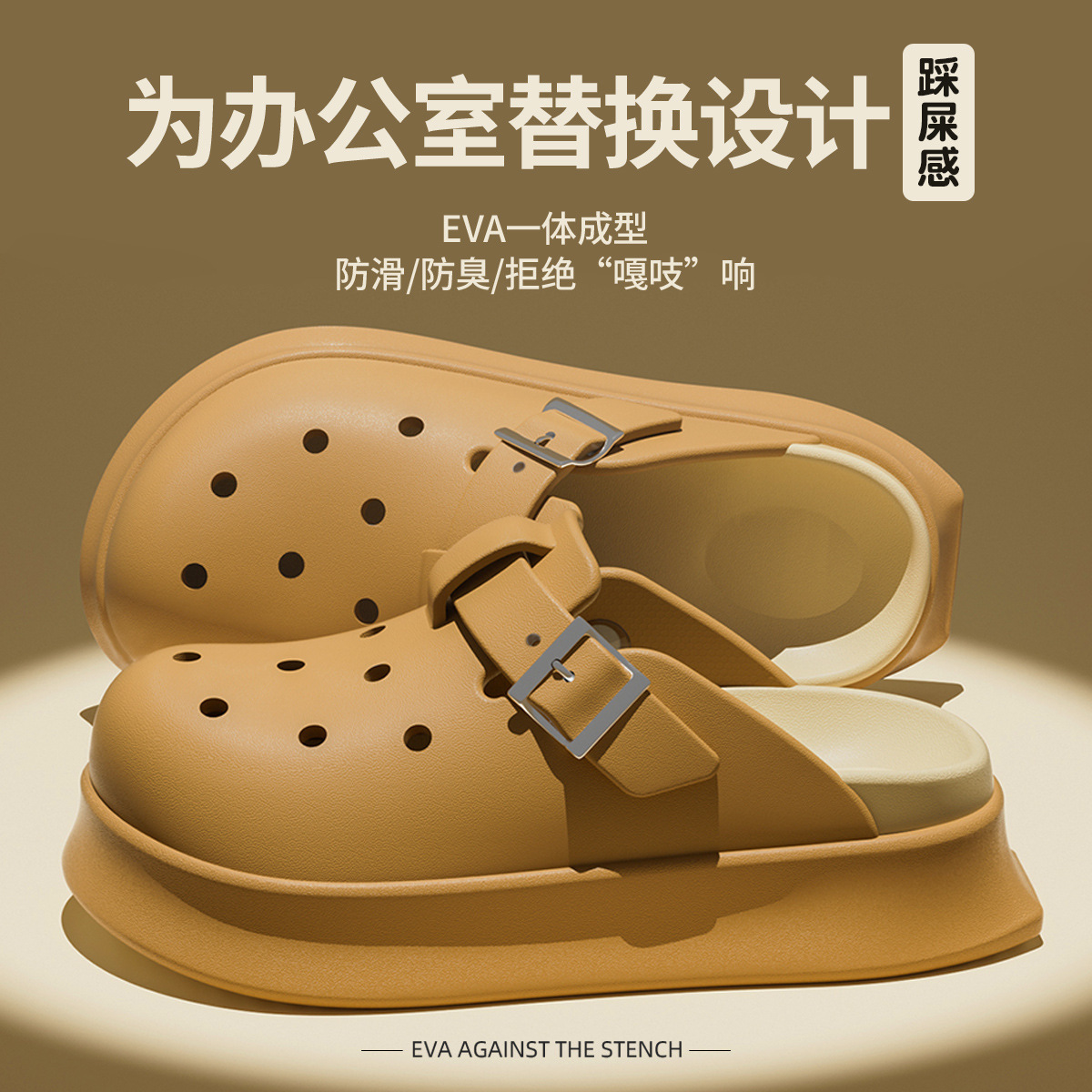 ベーケン半スリッパの女性の夏の新しいオフィスは怠け者の包頭の厚い底の穴の靴の女性の外でカップルを着ます。