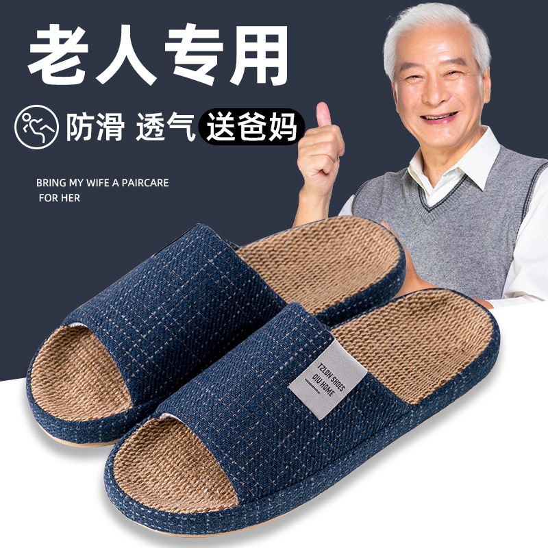 老人亜麻スリッパ四季型男性室内の通気性滑り止め足綿麻布芸スリッパ客用