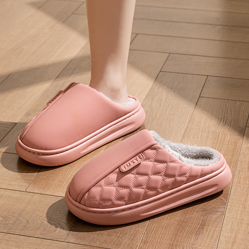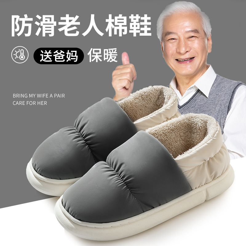 家庭用綿スリッパ防水汚れ防止秋冬にベルベットを厚くして老人の保温皮面綿を冬の外に着る