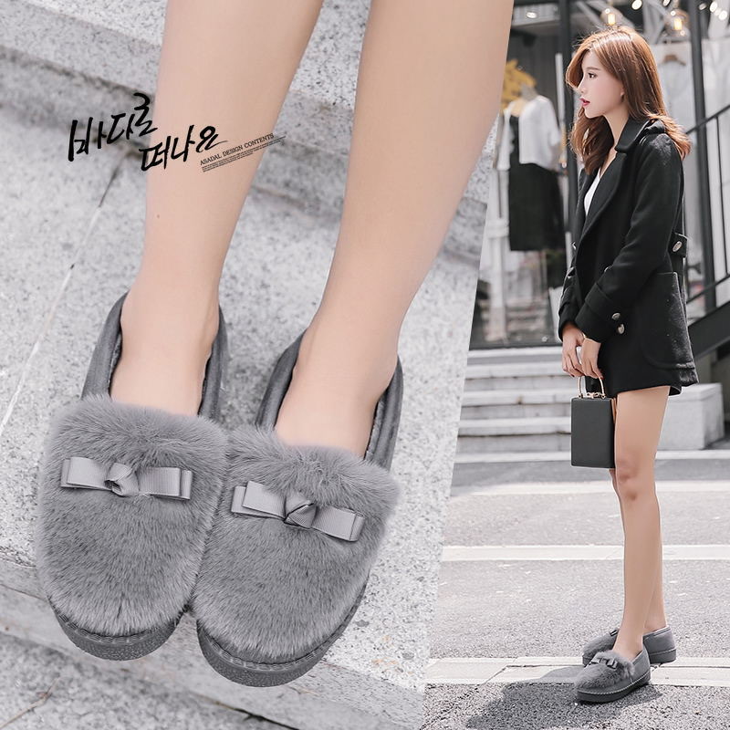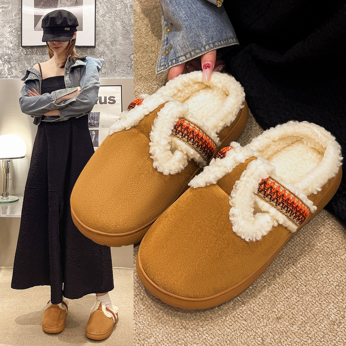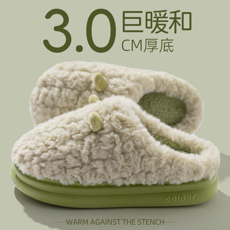 厚い底のベーケンの靴の女性の秋冬の2024新型のぬいぐるみのスリッパの室内の家庭の保温の綿のスリッパの女性は外で着ます。