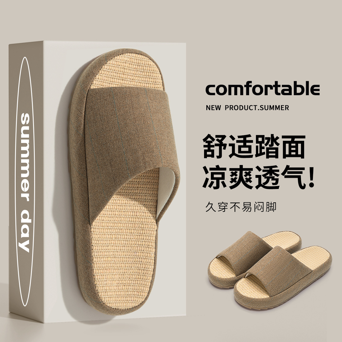 四季亜麻スリッパ室内家庭2024新型滑り止め吸汗静音綿麻布芸スリッパ客春夏